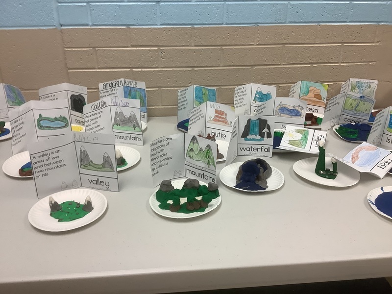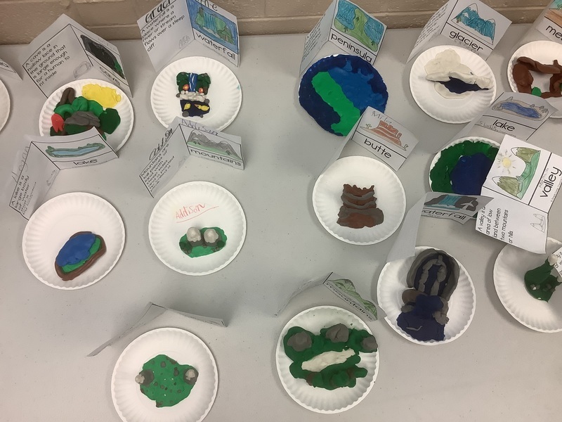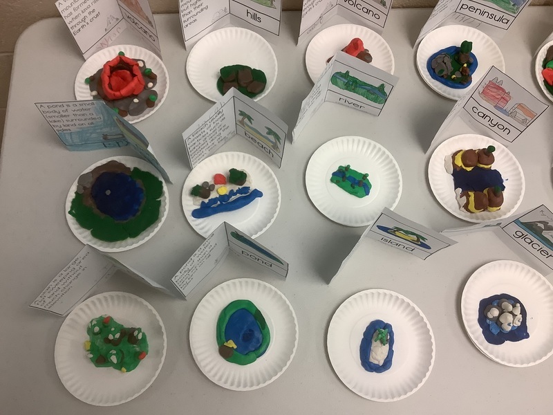 3rd grade spent some time learning about landforms and used clay to make those landforms.