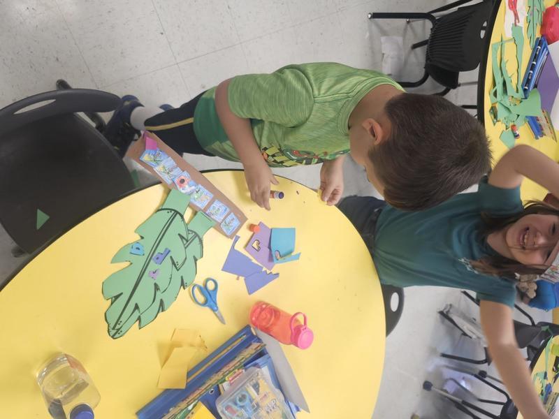 First grade students just finished a thematic unit focusing on the storybook Chicka, Chicka, Boom Boom. Students created their own chicka, chicka, boom boom tree.
